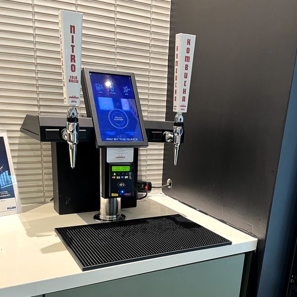 Step 2: Residents and employees start pouring delicious nitro cold brew coffee and kombucha immediately using tap to pay.